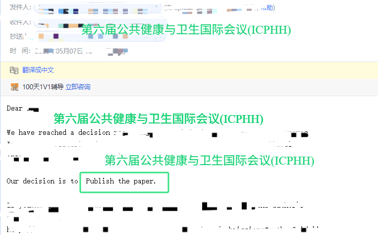 编号S**0**22论文已被第六届公共健康与卫生国际会议(ICPHH) 成功推荐至SCI发表;